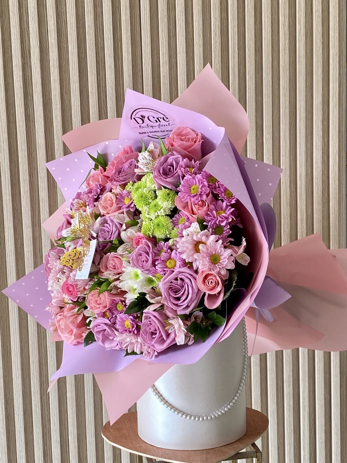 El color de la gerbera se asigna con disponibilidad en rosas.